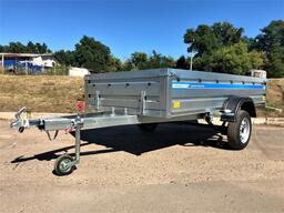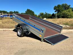 Открывается задний и передний борт. Задний и передний борт усилен фанерой и имеют замки для открывания. На прицепе есть функция САМОСВАЛА.
