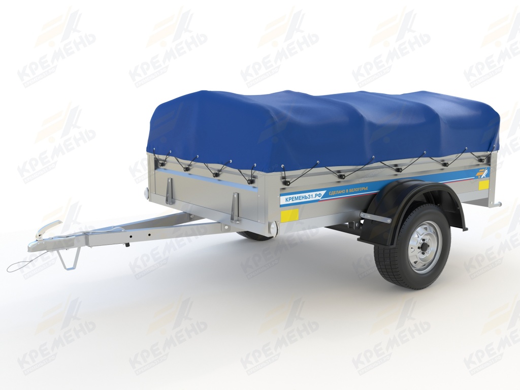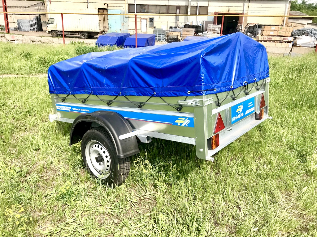Тип покрытия рамы и дышла - оцинкованное, задний борт открывается, это позволяет с удобством перевозить длинномерный груз, для защиты груза от пыли, грязи и дождя в комплект прицепа входит непромокаемый тент из ПВХ высотой 30 см от борта.