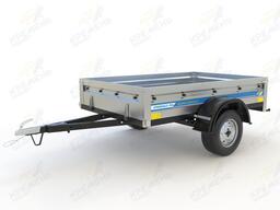 Размер кузова 2,0х1,3 метра, высота борта 0,31м, тощина бортов 0,7 мм. Рама окрашенная 60х40х2, дно - влагостойкая (бакелизированная) фанера, комплектуется 4-х листовой рессорой Alko, ступица ВАЗ-2108, амортизаторы ВАЗ-2101, борта оцинкованные, для легковых автомобилей, с треугольным съемным дышлом.