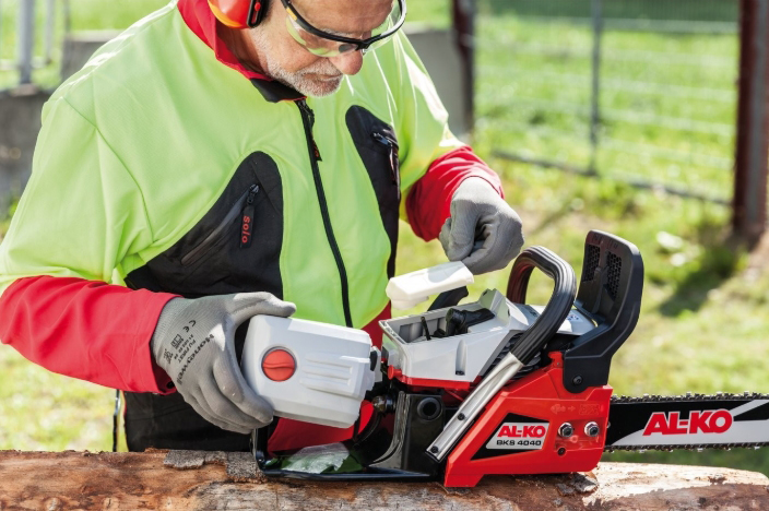 AL-KO BKS 4040 - компактная цепная бензопила, справится с распиловкой любой древесины. Отличается идеальным распределением веса, удобно лежит в руке и ей легко управлять. Быстро и без усилий регулируется натяжение пильной гарнитуры и цепи. Для максимальной безопасности пила оснащена системным тормозом, щитком для предотвращения повреждения рук с системой моментальной остановки цепи.