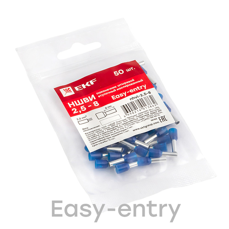 Наконечник штыревой втулочный изолированный EKF PROxima НШВИ 8 мм x 2,5 кв. мм (50 шт.)