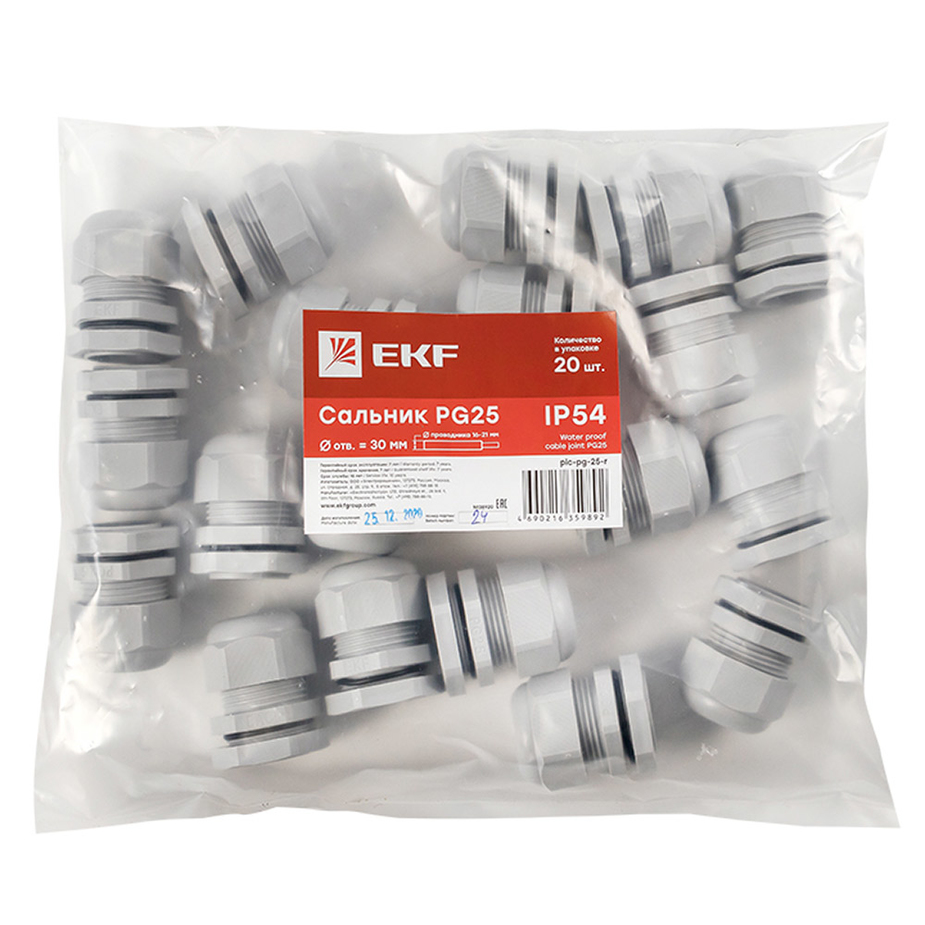 Сальник EKF PG 25 для кабеля диаметром PROxima 16-21 мм пластиковый IP54 серый (20 шт.)