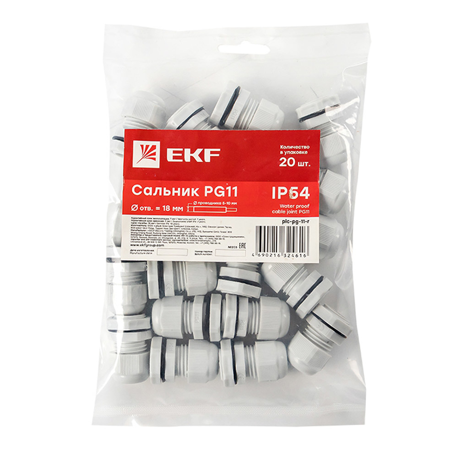Сальник EKF PG 11 для кабеля диаметром PROxima 5-10 мм пластиковый IP54 серый (20 шт.)