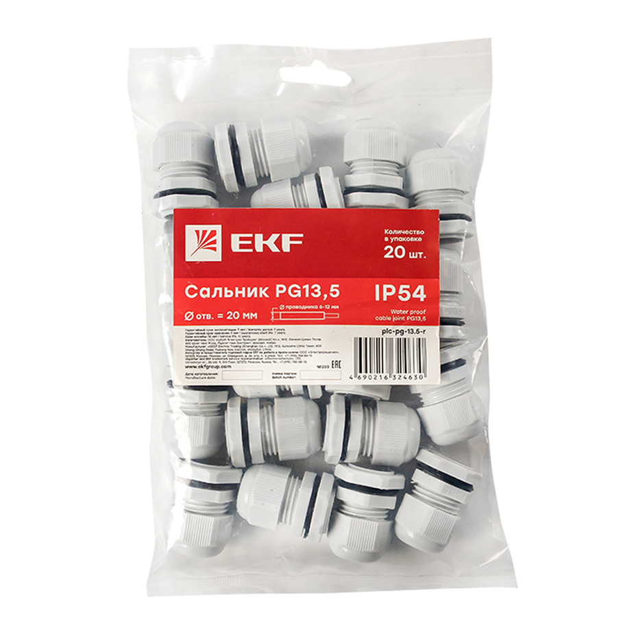 Сальник EKF PG 13,5 для кабеля диаметром PROxima 6-12 мм пластиковый IP54 серый (20 шт.)