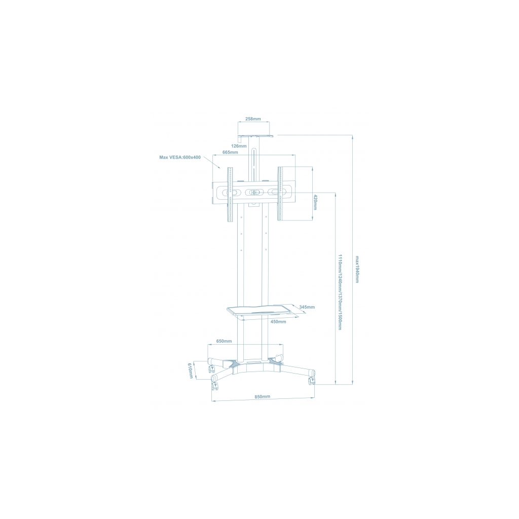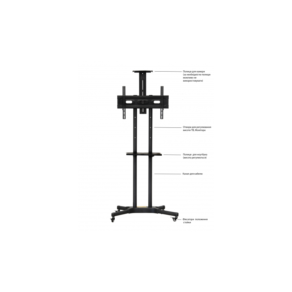 Під кріпленням для телевізора є невелика поличка, на яку можна покласти ноутбук, пульт дистанційного керування та інші необхідні для проведення презентації дрібниці. Вище кріплення розташована поличка для камери. Додатковою перевагою є матеріал виготовлення виробу - воно виконано з холоднокатаної сталі SPCC-класу, що забезпечує його міцність і довговічність.