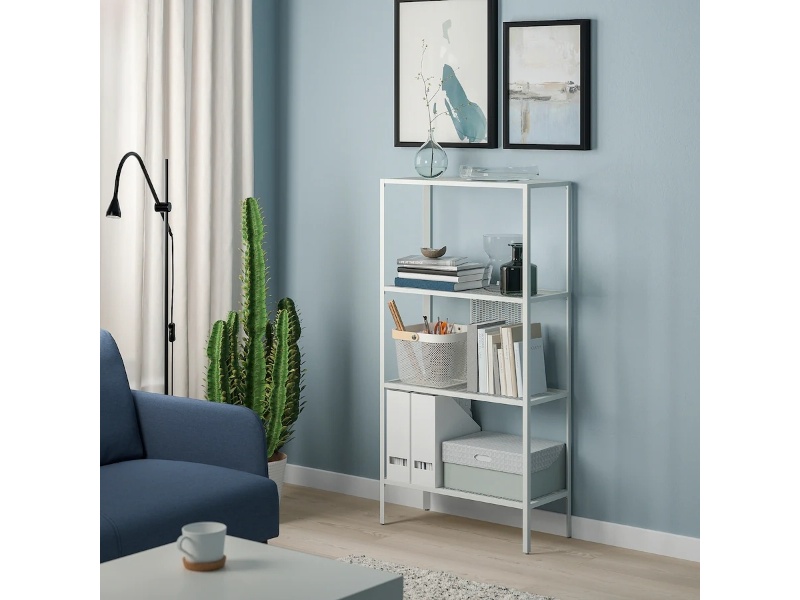 Дополнительная информацияМеталлический каркас и сетчатые полки — стильное и практичное решение для книг, декоративных аксессуаров и ваших любимых безделушек.