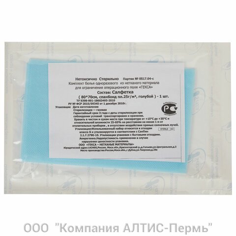 Простыня одноразовая ГЕКСА стерильная, 70х80 см, спанбонд 25 г/м2, голубая