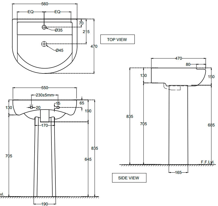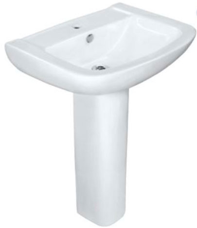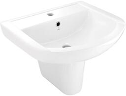 Умывальник на полупьедестал, на кронштейны, на пьедестал, ширина 560 мм, длина 470 мм, форма: полукруглая, санитарная керамика, отверстие под смеситель, отверстие под перелив.
