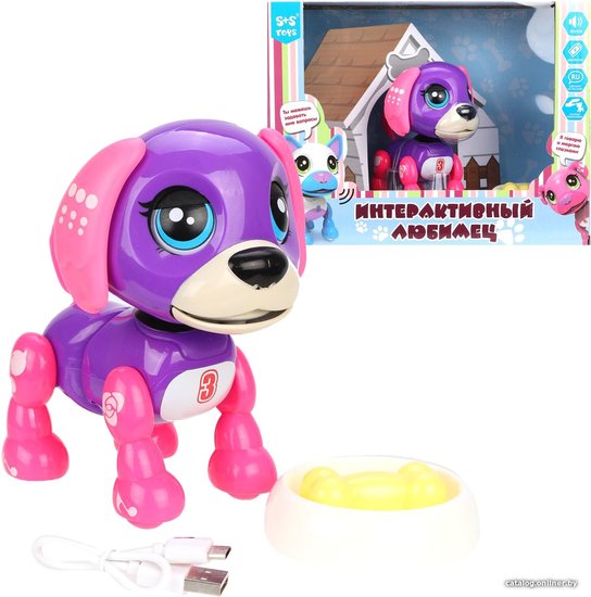ОсобенностиФразы, которые произносит собачка:- «Привет!»;- «Будешь моим другом?»;- «Кого ты любишь?»;- «Спой песенку»;- «Давай учить английский?»;- «Что ты любишь кушать?»;- «Давай играть!»;- «Пока!».