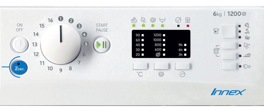 Šis rodiklis nurodo kiek maksimaliai skalbinių Jūs galite sutalpinti į skalbimo mašinos būgną. Nurodomas kilogramais.6 kg