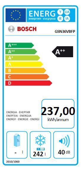 A standartinė klasė A+ - ekonominė, o G klasė sunaudoja daugiausiai elektros energijos.F