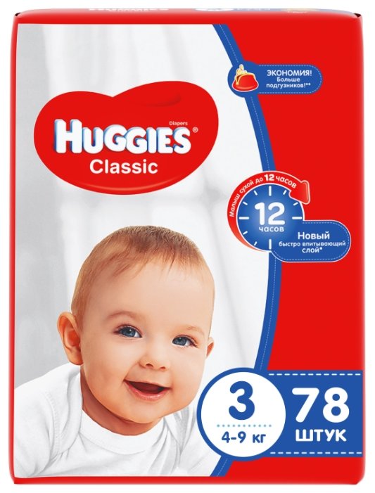 Huggies подгузники Classic 3 (4-9 кг) 78 шт.