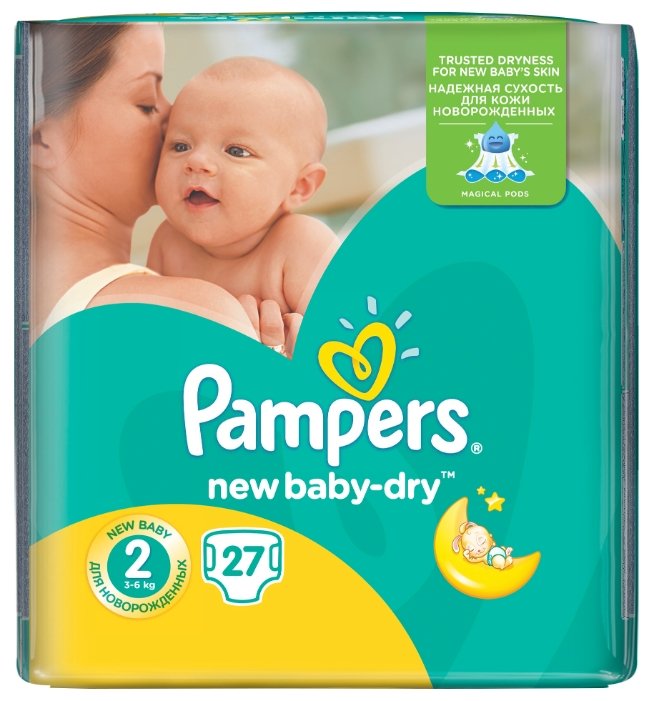 Pampers подгузники New Baby-Dry 2 (3-6 кг) 27 шт.