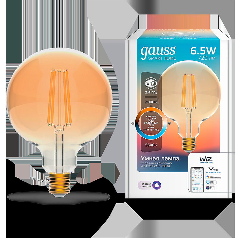 Gauss Лампа светодиодная филаментная Smart Home DIM+CCT E27 G95 Golden 6,5 Вт 2000-5500 К 1/40 1340112