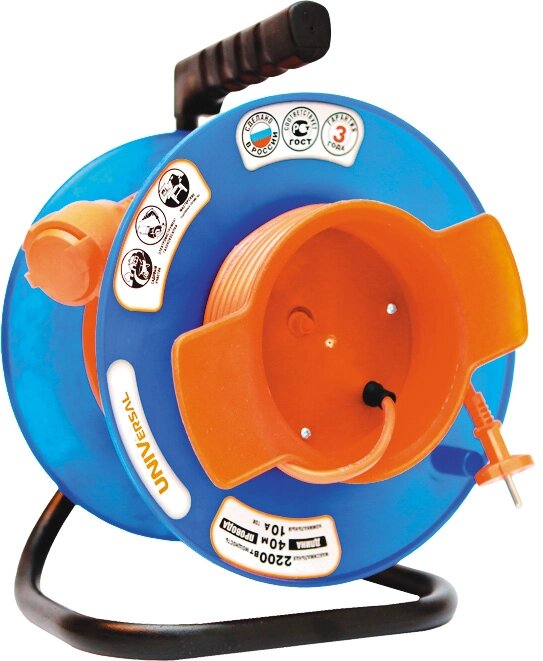 Удлинитель силовой на катушке без заземления "UNIVERSAL"ПВС (2x0,75 мм) 6 А, 1300 Вт, 40 м