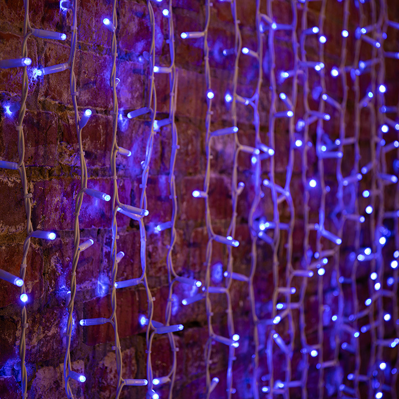 Гирлянда "Светодиодный Дождь" представляет собой гибкий горизонтальный шнур, к которому через определенные промежутки крепятся вертикальные нити со светодиодными лампами, которые отличаются от «Бахромы» тем, что имеют одинаковую, достаточно значительную длину, часто превышающую протяженность шины. На концах каждой шины есть разъем и штепсель, которые предназначены для последовательного соединения нескольких световых дождей в большой занавес ПЛЕЙ-ЛАЙТ. Используя занавес, можно не только создавать красивые световые занавесы или оформлять различные плоскости, например, фасады домов, окна и т.д., но и украшать объемные объекты. Гирлянду, работающую в непрерывном свечении, называют фиксинг, а использующую режим светодинамики – чейзинг. Светодинамические эффекты становятся доступными только при подключении гирлянды к сети через специальный контроллер. Сегодня в гирляндах источником света служат светодиоды, которые пришли на смену применявшимся ранее лампам накаливания. С полупроводниковыми источниками гирлянда стала более надежной, потребляет меньше энергии, обрела более насыщенное сияние. Данная гирлянда имеет зеленый цвет свечения светодиодов.