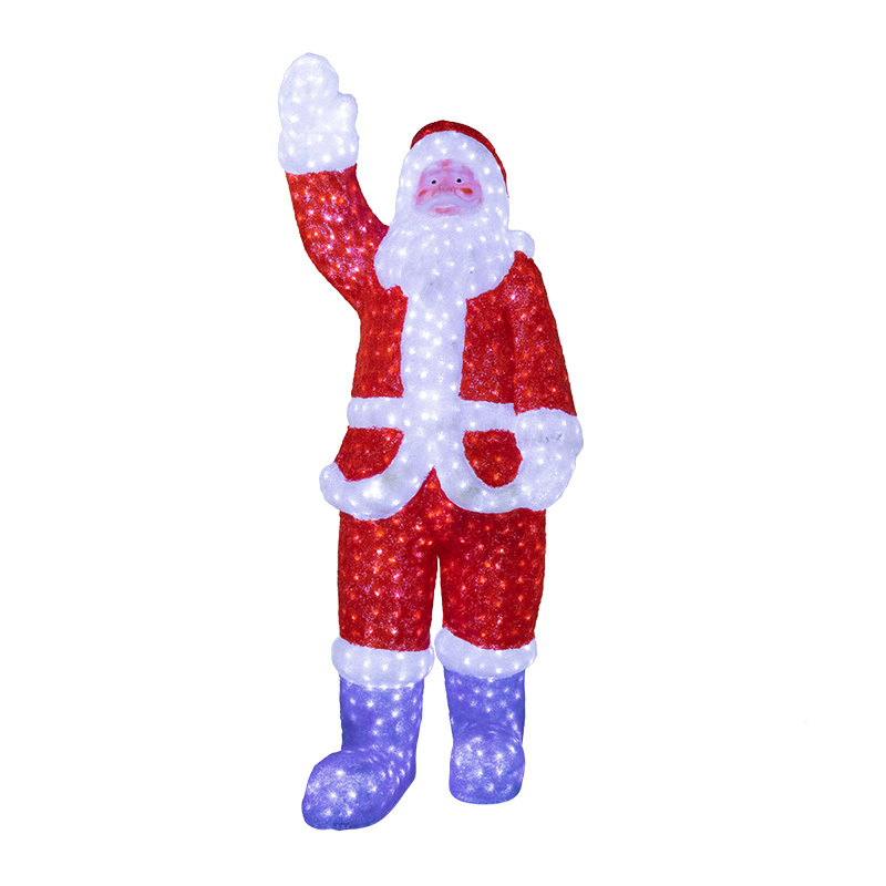 Акриловые фигуры за несколько лет вызвали большой интерес у дизайнеров и частных клиентов. С каждым годом расширяется не только ассортимент акриловых фигур, но и появляются новые технологии нанесения акрила. Эти яркие, светящиеся объемные фигуры, состоящие из металлического каркаса, акрила и светодиодов, применяются для оформления и создания новогодней атмосферы в кафе, ресторанах, торговых центрах, магазинах, на площадях и перед входом, а также просто в частных домах и квартирах. Все фигуры укомплектованы понижающим трансформатором , что обеспечивает безопасность при контактировании, а так же имеют степень защиты IP 65, что позволяет использовать их как в помещении, так и на улице. Акриловая светодиодная фигура "Санта Клаус 210см" высотой 210 см, светящаяся более чем 4000 ярких диодов, выполнена по специальной технологии нанесения акрила. Она позволит Вам создать ту самую, настоящую новогоднюю атмосферу и принести сотни радостных улыбок.