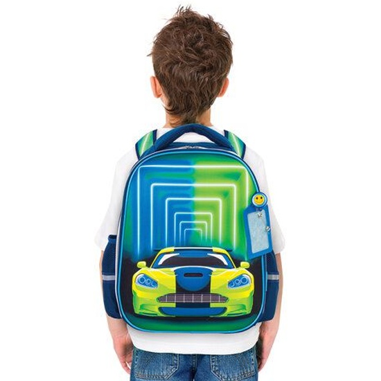 Ранец ЮНЛАНДИЯ LIGHT,229917, 2 отделения, "Neon car", 3D панель, 38х29х16 см