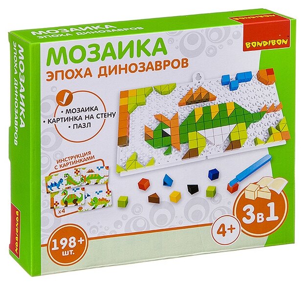 - Дополнительная информация в наборе: 198 деталей мозаики, 2 соединяющиеся между собой основы, крючок, палочка, инструкция