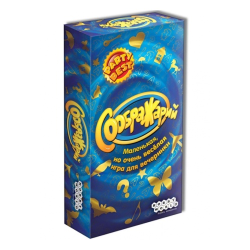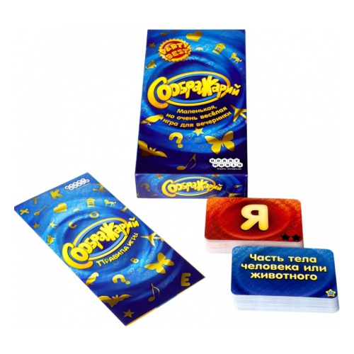 «Соображарий» — игра для семейных посиделок и веселых вечеринок, которая одинаково понравится и детям, и взрослым. Каждый ход вы будете тянуть из колоды карты букв и категорий — а потом проявлять чудеса реакции и скорости, пытаясь первым вспомнить слово, соответствующее заданию. Для победы в этой игре Вам необязательно быть самым эрудированным — нужно просто быстрее всех соображать!