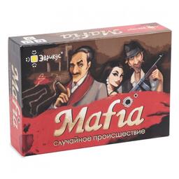 Настольная игра ЭВРИКУС Mafia. Случайное происшествие (Мафия)Город засыпает, просыпается мафия!"Mafia. Случайное происшествие" - версия популярной психологической игры, в которой жители города вычисляют и обезвреживают людей из мафии, а мафиози - противодействуют им. Детективный сюжет, интрига и право выбора делают эту игру безусловным хитом уже много лет.Помимо обычного противостояния участников подстерегают разнообразные случайные происшествия, которые делают игру ещё более интригующей.Кому подойдёт эта игра?Большой компании: игра позволяет собрать до 19 участников.Поклонникам детективных игр.В дорогу: для игры не требуется большого стола.Как играть?1. Перед началом игры определитесь с количеством карт-ролей в зависимости от количества участников. Выберите игрока, который будет ведущим. Раздайте каждому игроку по одной карте Роли и карте Случайностей. Игроки смотрят свои карты, не показывая их друг другу.2. В игре есть дневная и ночная фазы, которые сменяют друг друга. Во время ночной фазы все участники, кроме мафии, закрывают глаза. Мафия выбирает жертву. Во время дневной фазы активны все игроки, они пытаются вычислить членов мафиозного клана и устранить их из игры.3. Игрок, на которого совершили "покушение" ночью или попытались вывести из игры в ходе дневного голосования, может сыграть карту Случайностей.4. Игра продолжается до тех пор, пока не останется один мирный житель [победа мафии] или пока не будут раскрыты все "мафиози" [победа горожан].