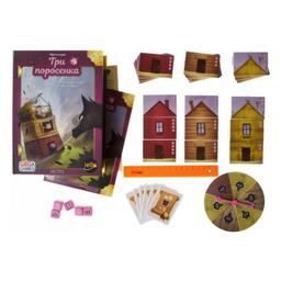 Коробка выглядит как самая настоящая книга. Внутри вы найдете красочные прямоугольники домов, рулетку волчьего дыхания и специальные кубики. А шесть карт наград разнообразят партии, добавив особые цели, за которые можно заработать дополнительные победные очки.