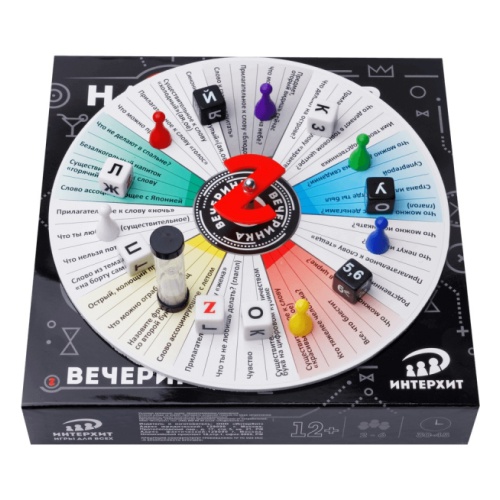 Все очень просто: фиксируете диск с механизмом на игровом поле, ставите фишки на старт, желаете друг другу удачи и вращаете диск «Называтора». Когда диск остановится, стрелка укажет на одну из тем (всего их 80, по 40 на каждой стороне диска) — например, «Что можно увидеть на концерте?». Теперь бросаем кубики: выпадет 7 букв и цифра.