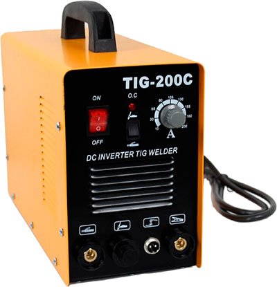 Сварочный аппарат инверторного типа для аргонодуговой сварки (TIG). Сварочный ток: 10-200 А. Продолжительность нагрузки: 60 %. Напряжение без нагрузки: 56 В. Размеры: 46x27x34.5 cм.