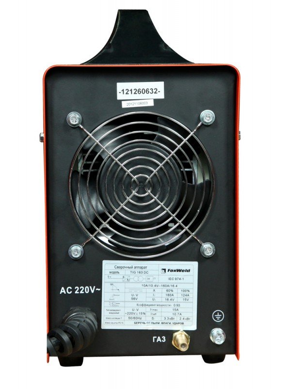 Сварочный аппарат инверторного типа для ручной дуговой сварки (MMA) и аргонодуговой сварки (TIG). Питание от сети 220 В. Цифровой дисплей. Переключатель режима 2T/4T – выбор управления режима сварки, бесконтактный поджиг HF/встроенный клапан. Размеры: 37х16х29 см.