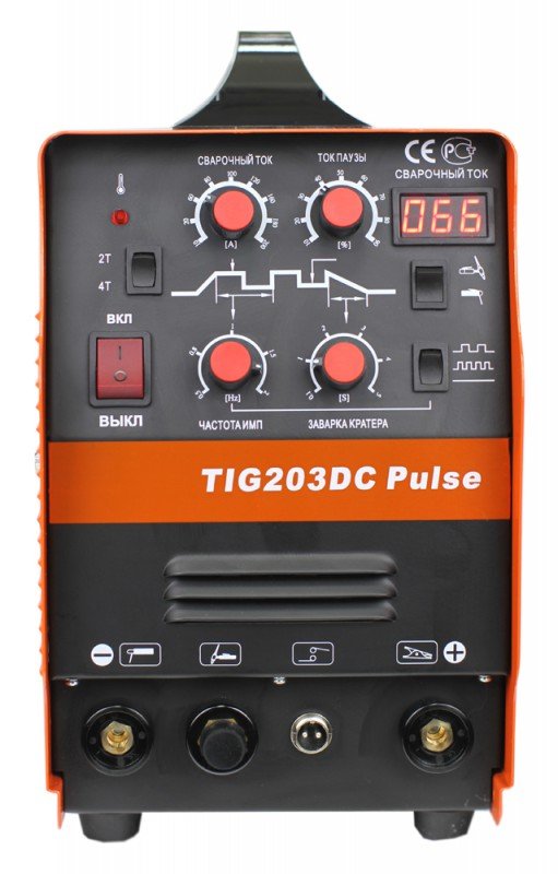 Сварочный аппарат инверторного типа для ручной дуговой сварки (MMA) и аргонодуговой сварки (TIG). Импульсный режим сварки. Питание от сети 220В с пониженным электропотреблением. Переключатель режима 2T/4T – выбор управления режима сварки, бесконтактный поджиг HF/встроенный клапан. Регулировки заварки кратера и продувки после сварки позволяют добиваться лучшего внешнего вида сварного шва.