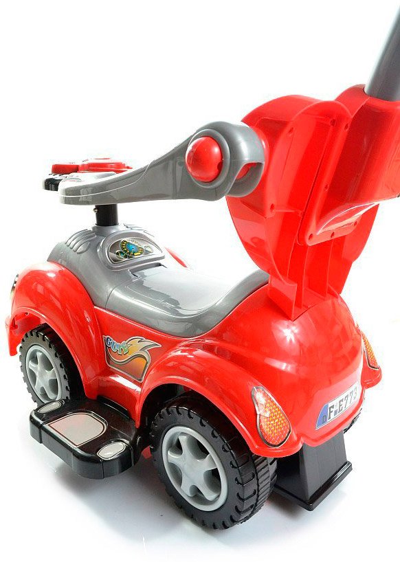 Машина-каталка для детей от 1 года. Удобное сидение с высокой спинкой. Родительская ручка-толкатель. Защитный бампер. Подставки под ножки. Отсек для игрушек под сиденьем. Звуковые эффекты на руле. Материал: пластик. Допустимая нагрузка: 25 кг. Размер: 62x43x85 см. Вес: 3.8 кг. Цвета в ассортименте.