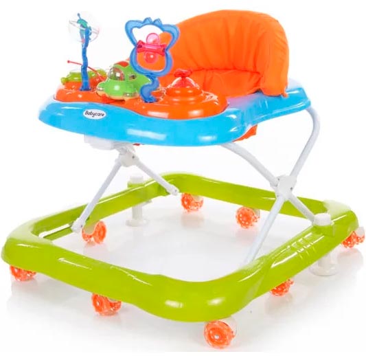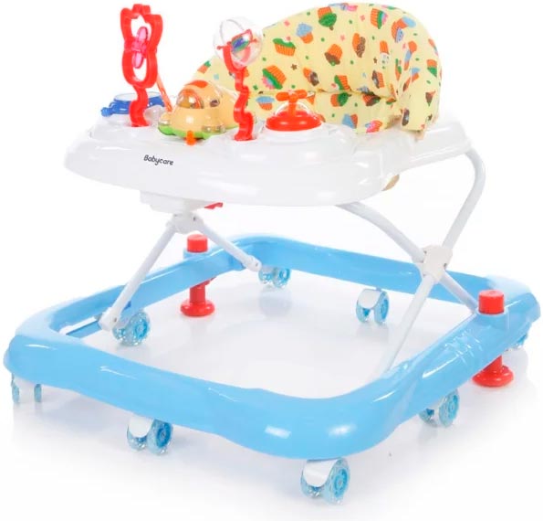 Ходунки для детей от 6 месяцев. Максимальная нагрузка: 11.5 кг. 8 силиконовых колес, 2 стоппера. 3 положения регулировки по высоте. Музыкально-игровая панель. Съемная обивка для удобства стирки. Складная конструкция. Размер в разложенном состоянии: 64х58х55 см. Размер в сложенном состоянии: 64х58х18 см. Вес: 3.5 кг.