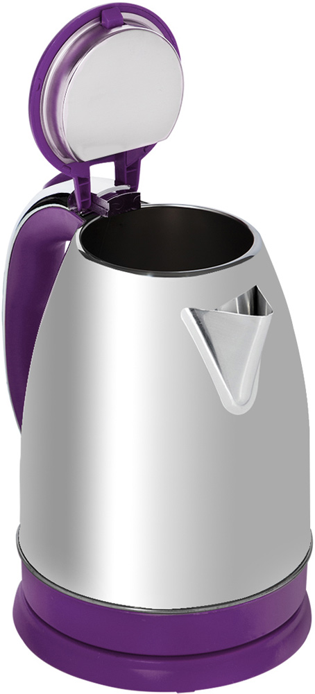 Электрический чайник, мощность 1500 Вт, объем 1.8 л, материал корпуса металл/пластик, нагревательный элемент закрытая спираль, дополнительные функции: индикация включения, подставка с вращением на 360°.