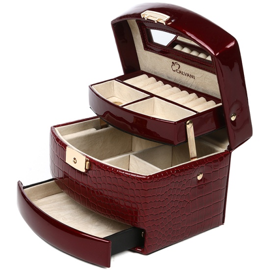 Трехъярусная вместительная шкатулка от торговой марки Calvani бережно вместит все ваши украшения и поможет их систематизировать. Корпус шкатулки обшит качественной эко кожей. Внутри предусмотрено зеркало. Верхний ярус поделен на три отделения, включая отсек с мягкими валиками - для хранения колец. Средний ярус содержит несколько ячеек свободного назначения. Нижний ярус выполнен в виде просторного выдвижного отделения. На корпусе имеется ручка для удобства переноски. Шкатулка Calvani станет изящным дополнением женского туалетного столика, и ежедневно будет радовать своим качеством.