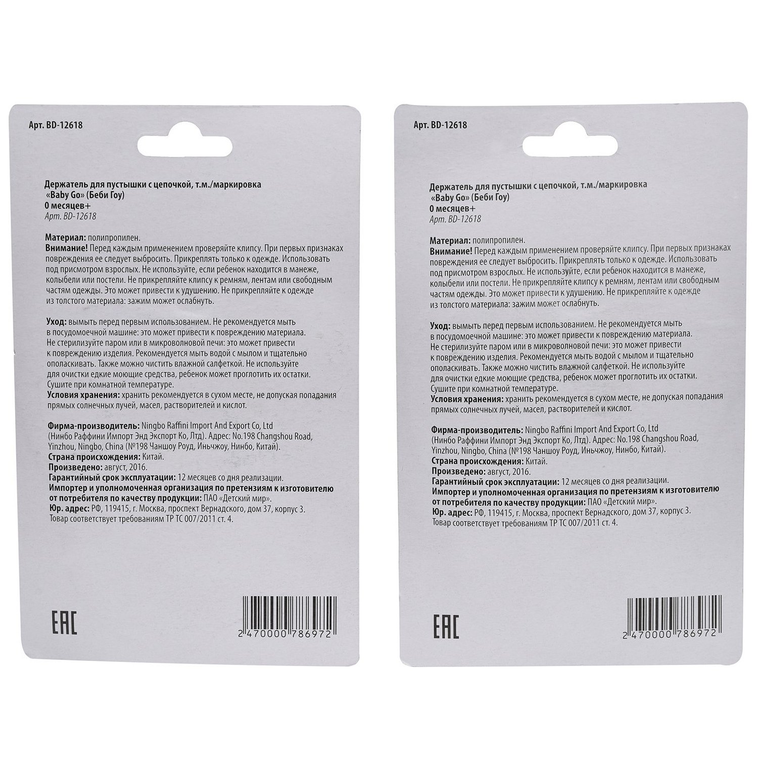 Держатель для пустышек Baby Go в ассортименте BD-12618