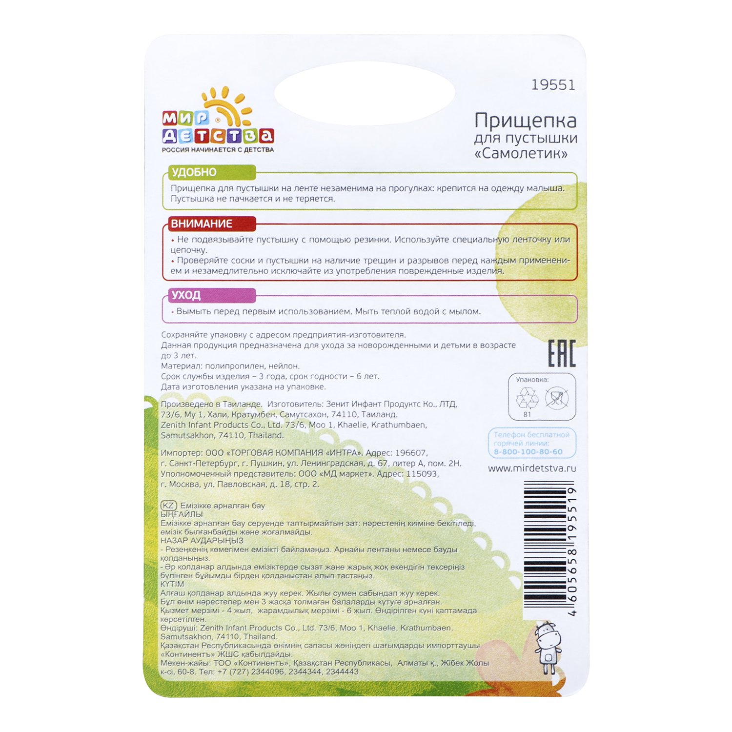 Прищепка для пустышки Мир Детства Самолетик 19551