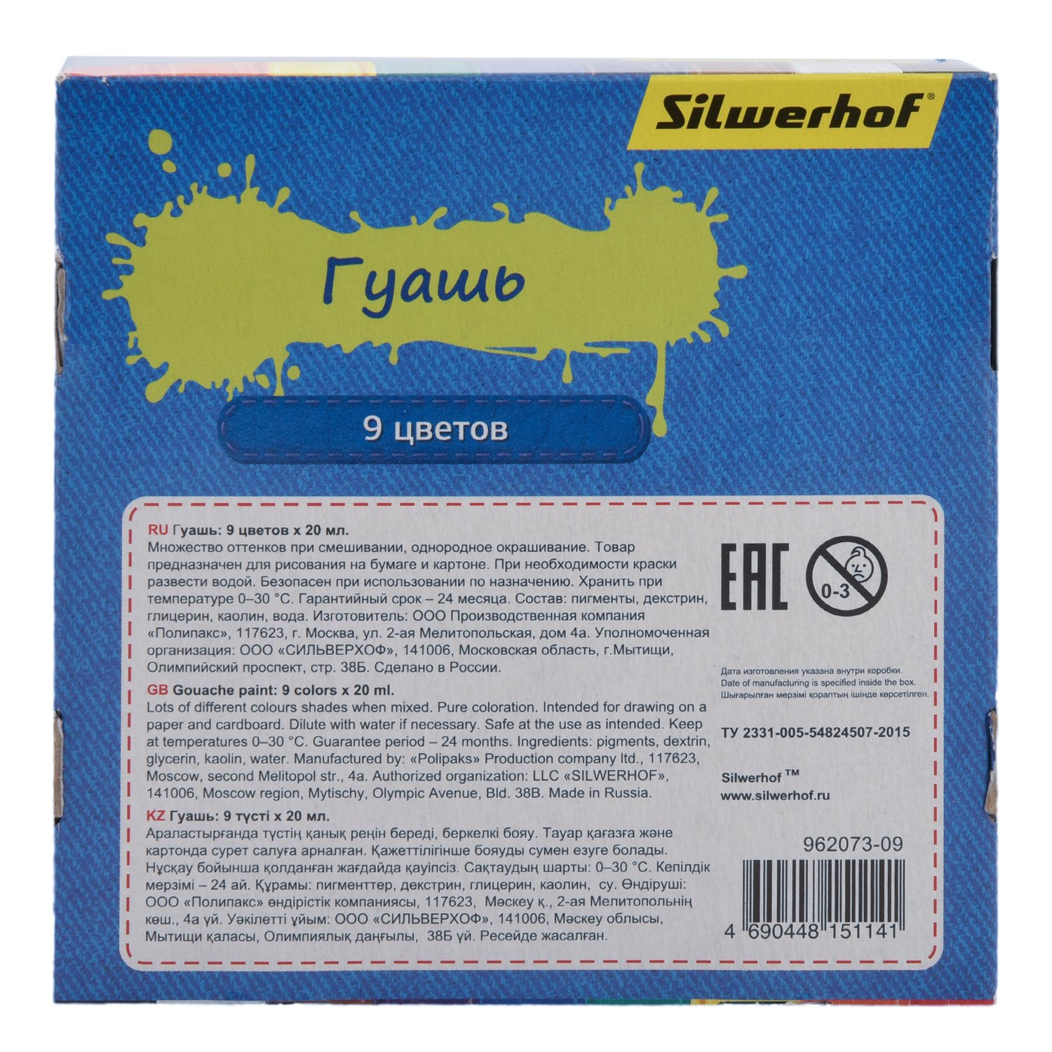 Гуашь Silwerhof Пластилиновая 9цв. в баночках по 15мл 962075-09