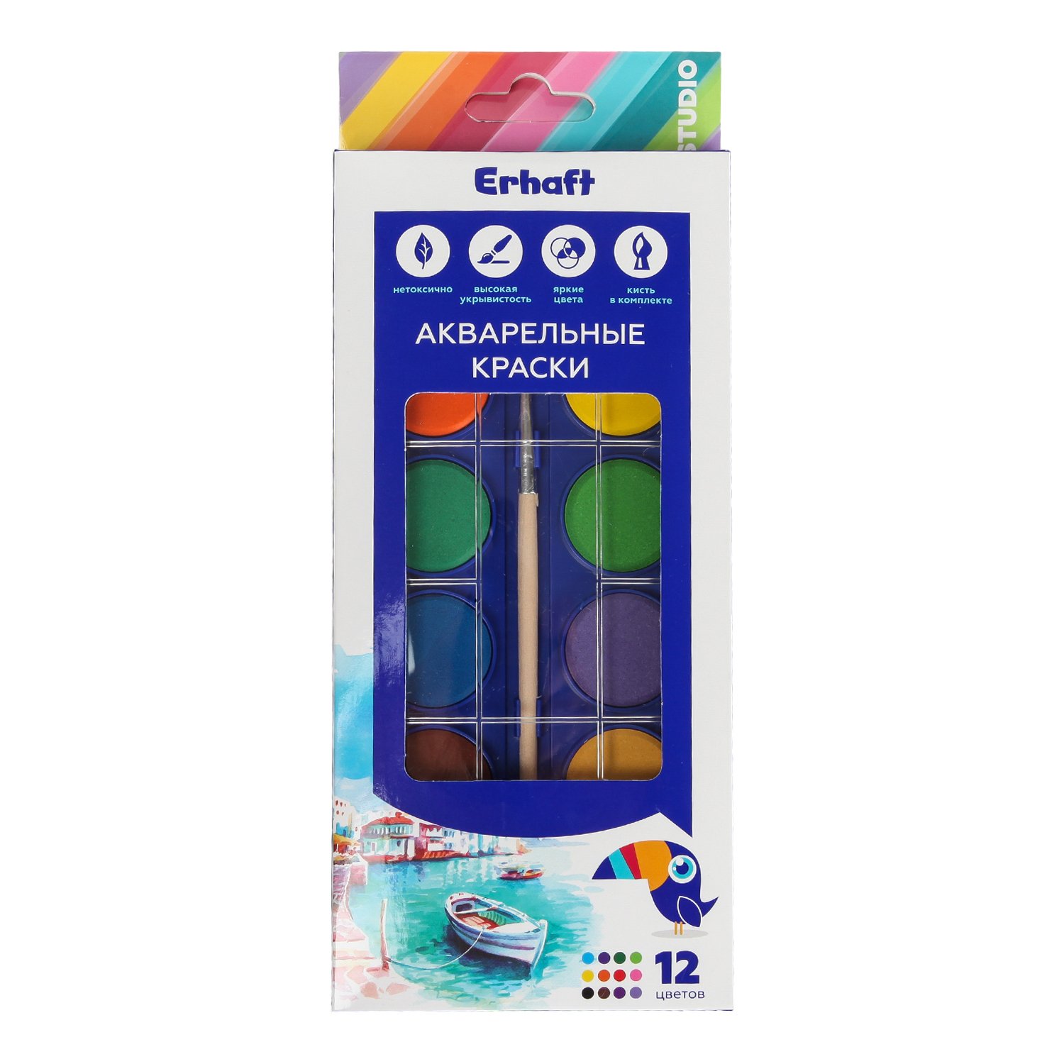 Краски акварельные Erhaft с кисточкой 12 цветов MP55787