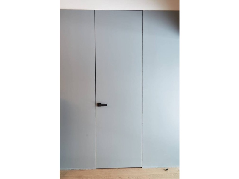 - Комплектация скрытый короб с примыканием для гипсокартона или серпянки под покраску, дверное полотно 44мм под покраску, скрытые петли и бесшумный магнитный механизм AGB 3.2 (Италия), уплотнитель
