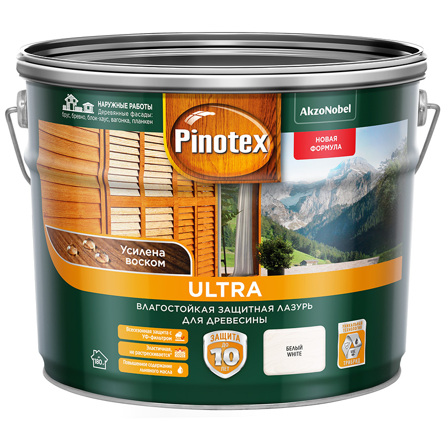 Пропитка для дерева Pinotex Ultra полуглянцевая 9 л (цвет: белый)