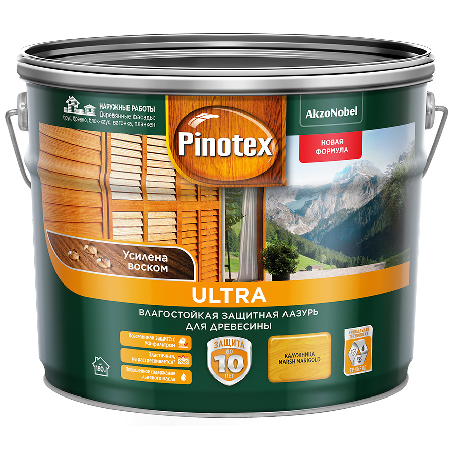 Пропитка для дерева Pinotex Ultra полуглянцевая 9 л (цвет: калужница)