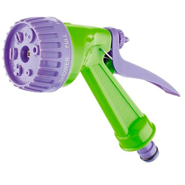 Пистолет-распылитель со штуцерной посадкой и курком, расположенным сзади. Оснащен регулируемой форсункой, что обеспечивает семь режимов полива: душ, режим задействования всех отверстий, мелкий туман, плоско-вертикальную струю, плоско-горизонтальную струю, туман, жесткую струя. Имеет фиксатор курка для непрерывной работы. Предназначен для всех типов полива на дачных участках, в садах, парках и скверах, а также для очистки. Совместим со всеми элементами системы полива PALISAD и PALISAD Luxe. Корпус, рукоятка и курок пистолета изготовлены из прочного АБС-пластика.