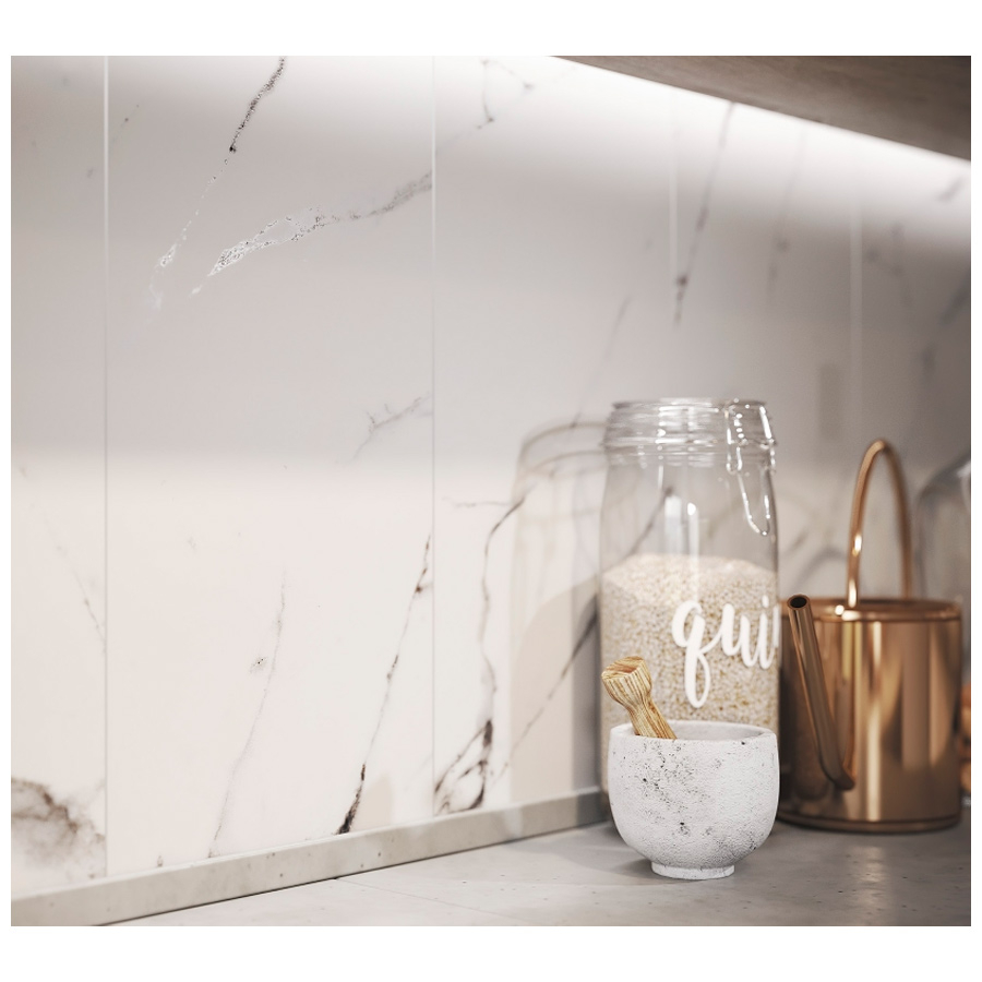 Матовый глазурированный керамогранит Lorenzo — это высокоточная имитация мрамора, выполненная с помощью цифровой печати. В рисунке глубина природного мрамора воссоздаётся карвинговыми чернилами, придающими блеск прожилкам, и многофейсовым дизайном, благодаря чему плитка практически неотличима от натуральной породы. Форматом 297x598 мм удобно отделывать большие площади на стенах и полу ванных комнат, коридоров или балконов. Сплошная выкладка сделает пространство светлее. Точечная отделка, например кухонный фартук или вставки на полу в коридоре, может перекликаться с другими элементами интерьера — мебелью или кухонной столешницей.