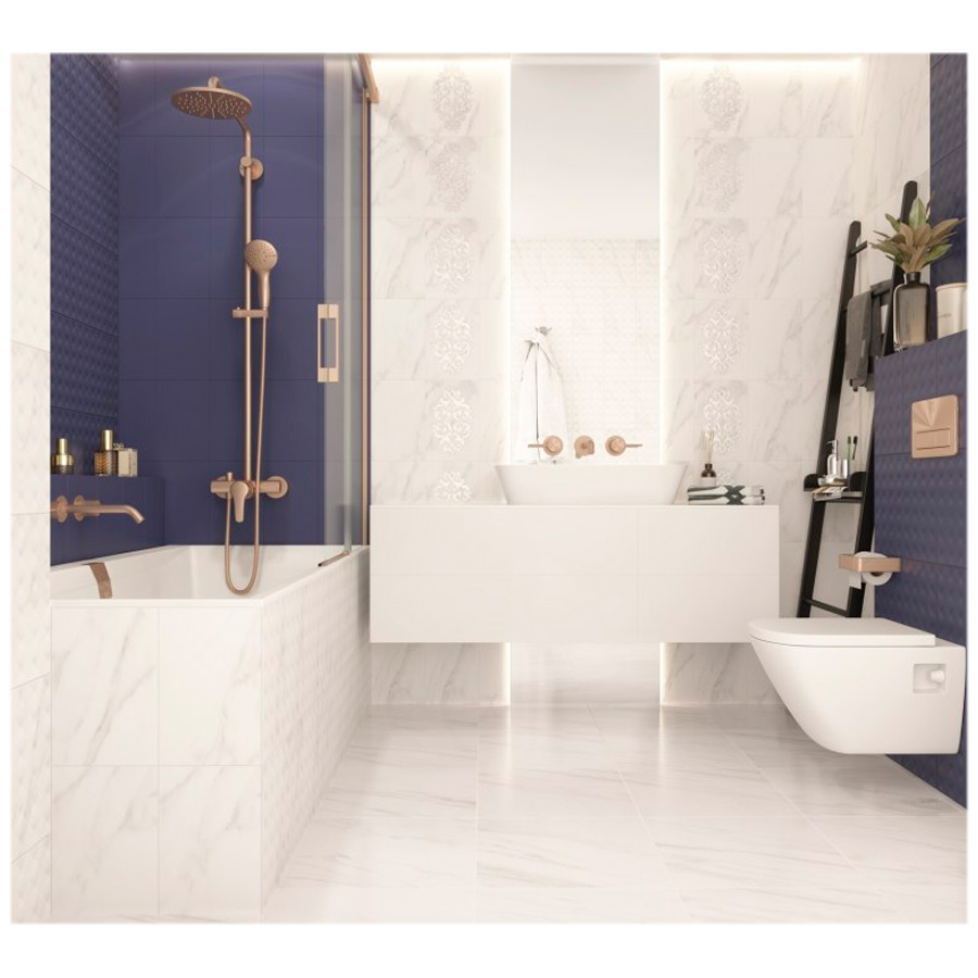 Глубокое синее море и шелковистый белый мрамор: ренессансная живопись стала источником вдохновения для коллекции "Сапфир", включающей два гармонирующих друг с другом варианта. Необыкновенную насыщенность цвета здесь обеспечивает высокое содержание оксида кобальта, а использование металла в финишном покрытии создает особый оптический эффект при любом освещении. Центральная вставка поможет создать более классический интерьер за счет вертикальной выкладки в сочетании с текстурой благородного белого мрамор, тогда как вставка с геометрическим паттерном в сочетании с рельефом и трендовым синим оттенком даст возможность воплотить самые актуальные дизайнерские идеи.