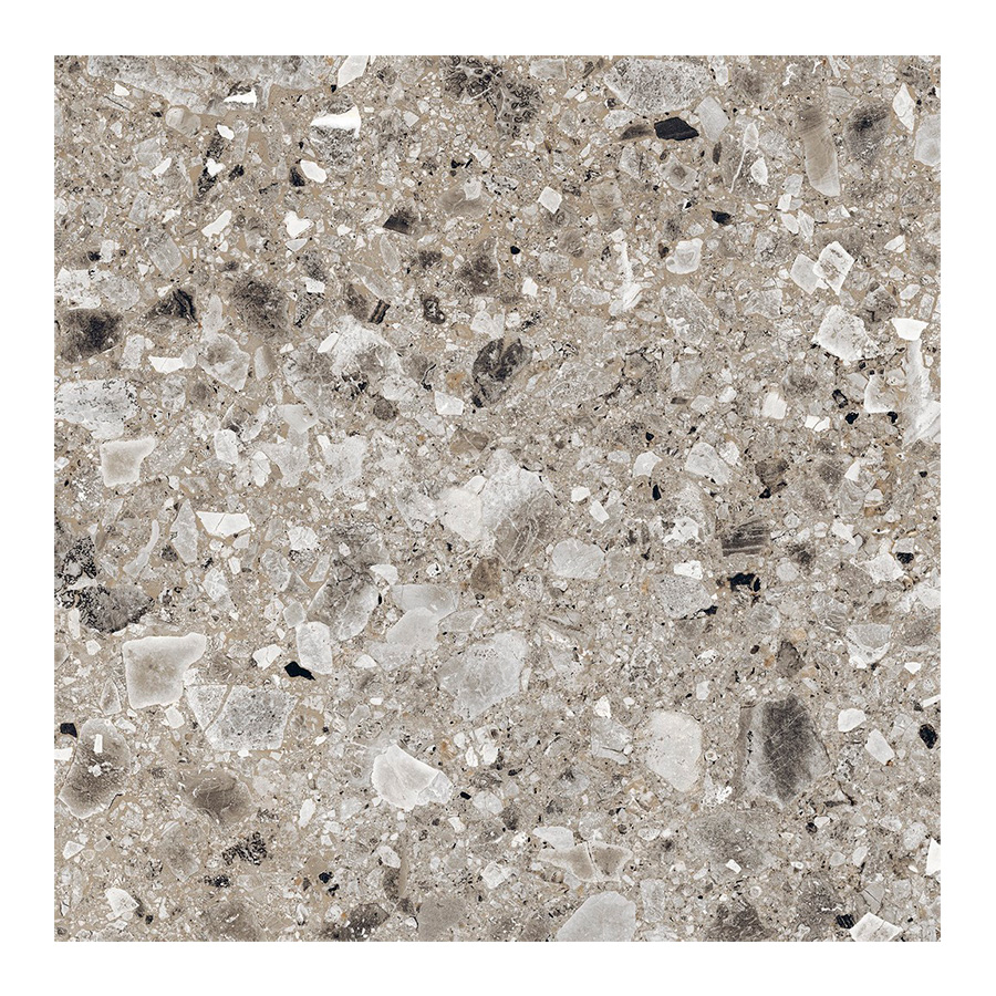 Тераццо, уникальную технику заливного пола с мозаикой из небольших кусочков мрамора, полудрагоценных камней и цветного стекла, утопленных в извести или цементе, изобрели ещё в Древней Греции. До идеала ее довели в Древнем Риме, а сегодня самыми востребованными мастерами терраццо считаются жители Венеции. Эта техника дала название особой коллекции керамического гранита, имитирующей яркий и динамичный рисунок — Terrazzo. Три оттенка впишутся в интерьер практически любого пространства, а эксплуатационные характеристики, подтвержденные в лабораторных условиях, гарантируют простоту ухода и долговечность.