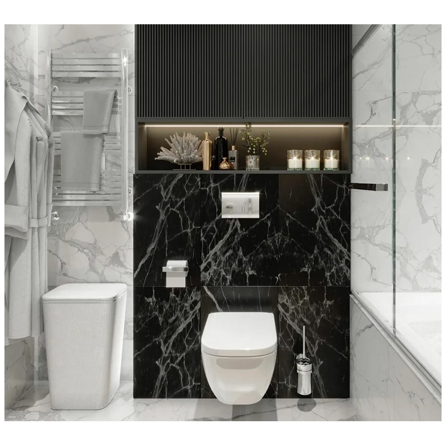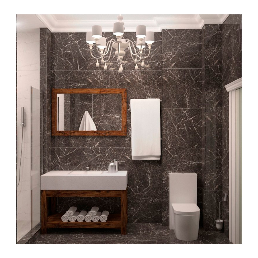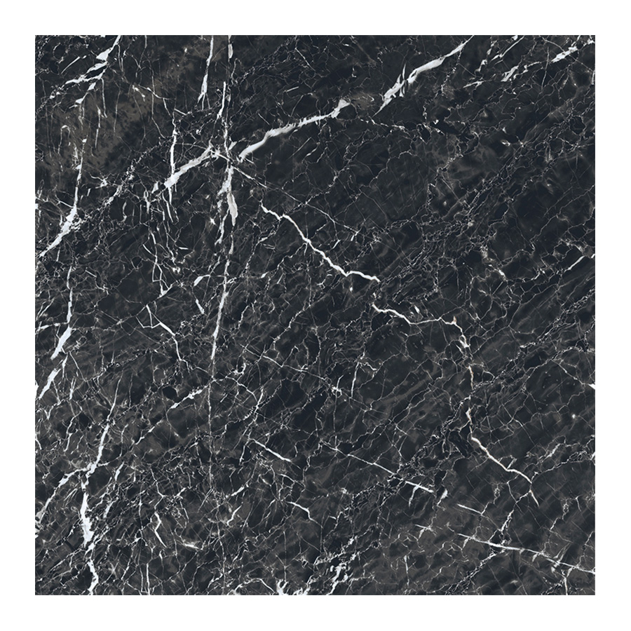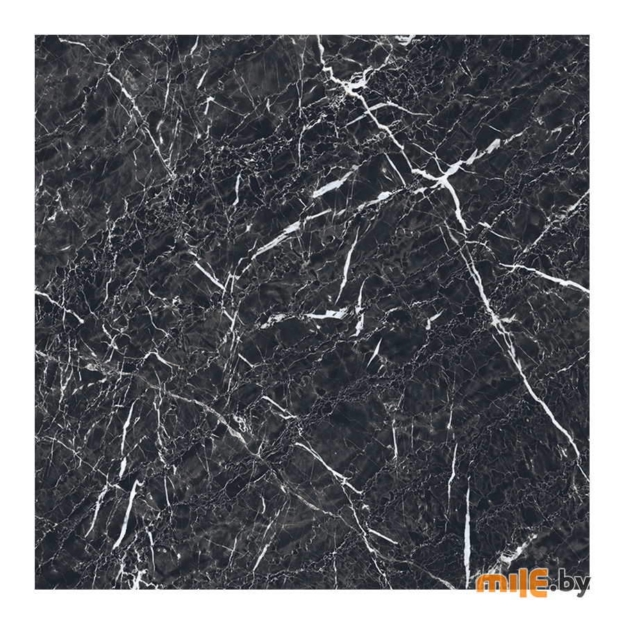 Черный артикул детально воспроизводит рисунок турецкого сорта Black Star. Он отличается интенсивным, контрастным, плотным узором витиеватых белых прожилок различной толщины на основном тоне цвета черно-коричневой сепии. Текстура мрамора приковывает взгляд: динамичная и хаотичная, она вызывает ассоциации с работами экспрессиониста Джексона Поллока.