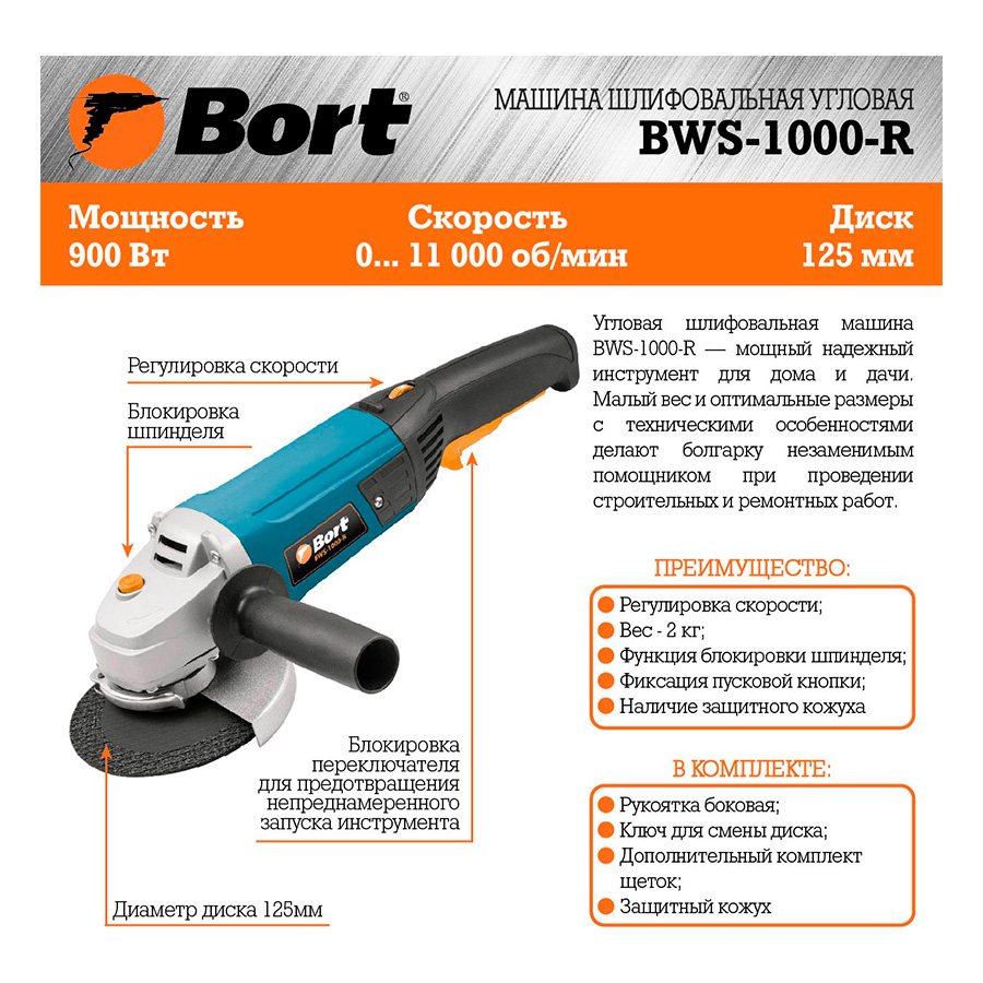 Угловая шлифмашина Bort BWS-1000-R (98296631)