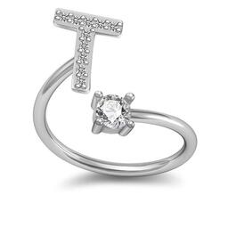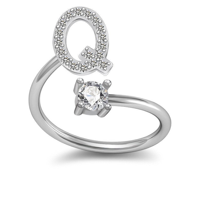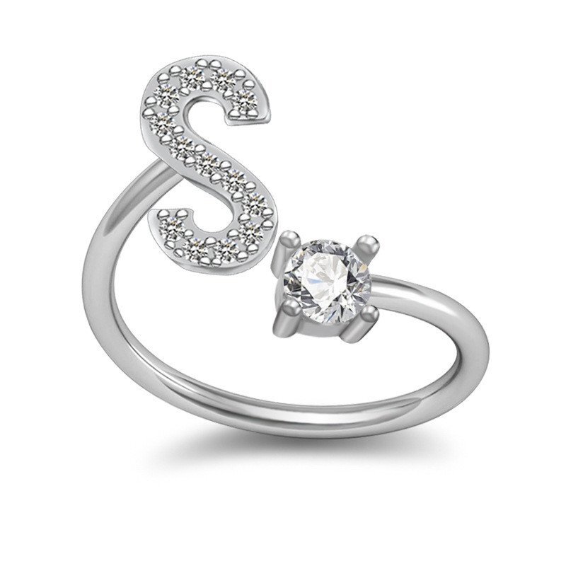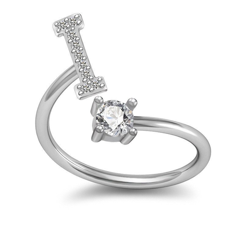 26-буквенное английское кольцо Медное кольцо из белого золота со стразами Геометрическое регулируемое кольцо