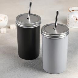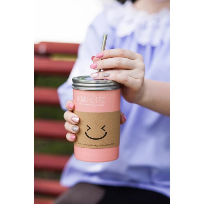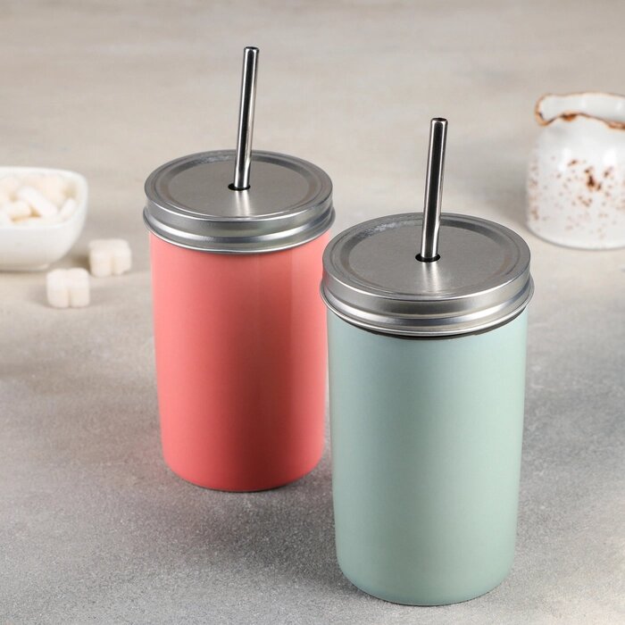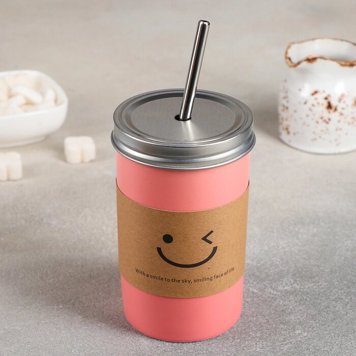 Стакан «Хорошее настроение», 450 мл, с крышкой и трубочкой, цвет МИКС