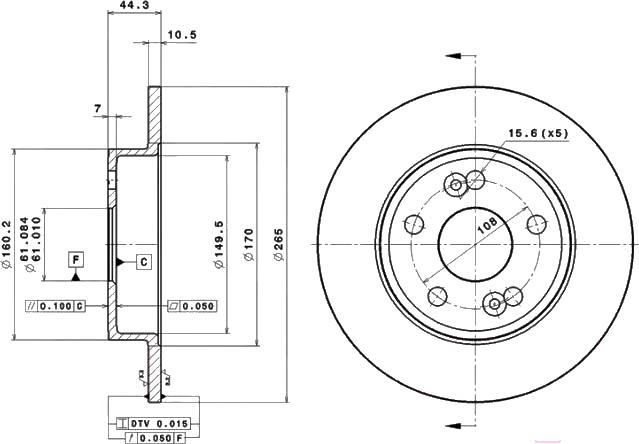 - Диаметр диска/барабана 265 мм